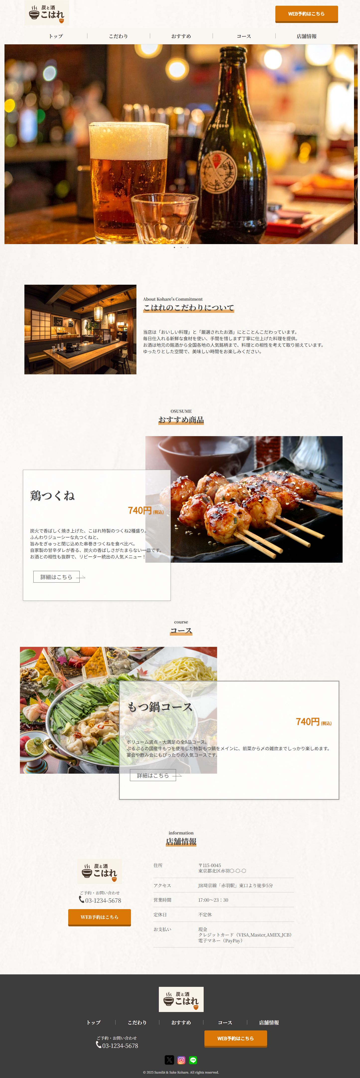 地域の魅力を発信する居酒屋こはれ(架空)の公式サイト。